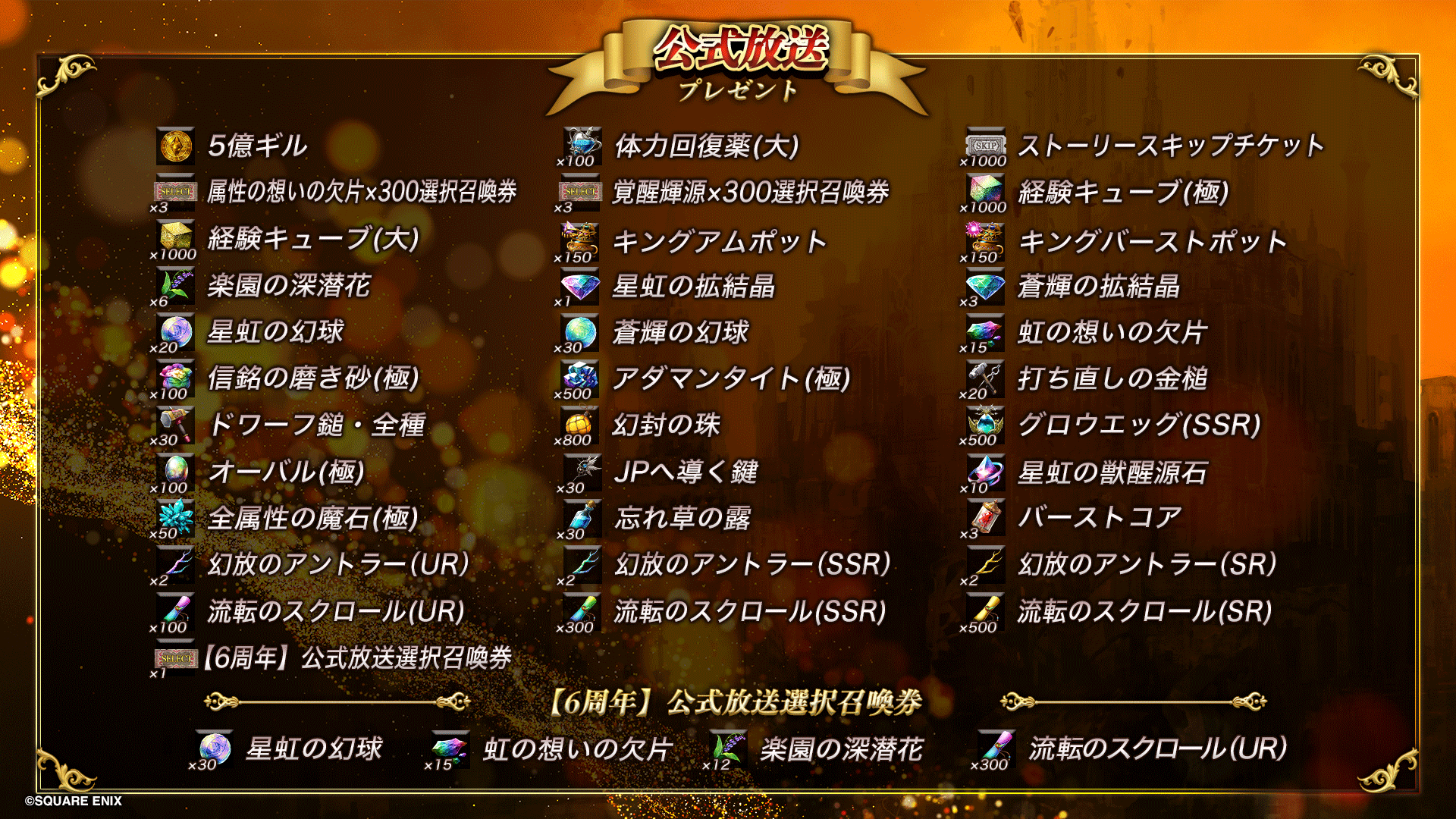 2025年10月28日(火)20時より放送した『FFBE幻影戦争』6th Anniversary直前!~コラボ&最新情報大公開SP~で発表された内容をご紹介します。